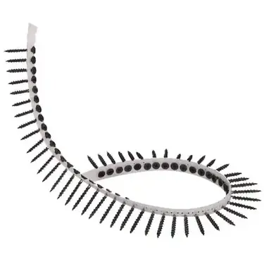 Șuruburi autofiletante în bandă, din oțel fosfatat rezistent la coroziune. Șuruburile mai lungi de 35 mm pot fi utilizate pentru fixare pe lemn.