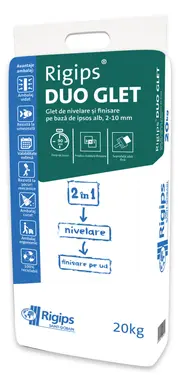 | 5200691135 | Glet de nivelare și finisare Rigips® DUO GLET 2 IN 1 | sac 5 kg (plastic vidat - PE) | pudră - ipsos, compuși minerali și aditivi | 90 | 1 kg / mp / strat de 1 mm | manual | A |