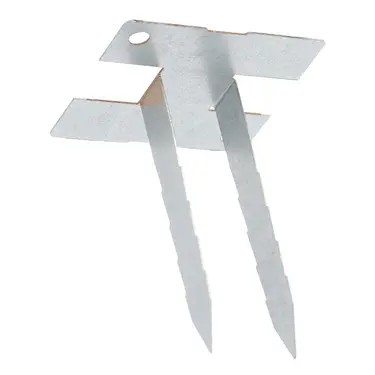 Clemă auto-adezivă, din oțel zincat, pentru fixarea stratului de vată de sticlă sau vată bazaltică, grosime 0.6 mm.
